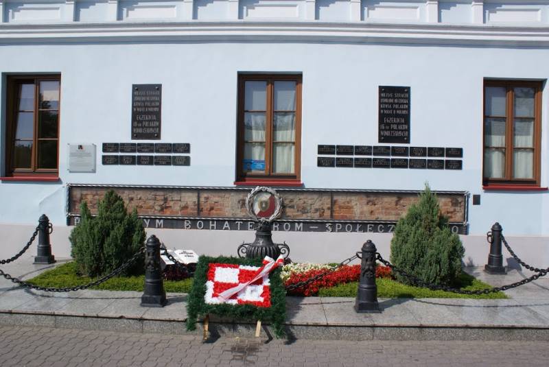16. Pamiątkowa tablica ku czci bialskich rzemieślników, uczestników ruchu oporu mieszkańców Podlasia, zamordowanych przez hitlerowców – ul. Moniuszki