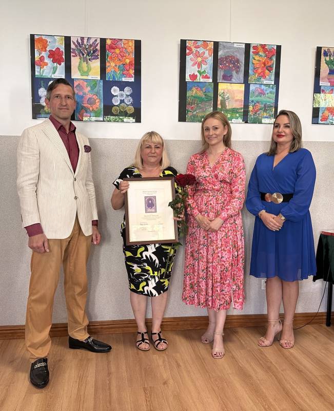 Wernisaż prac dzieci z koła plastycznego "Lazurowy Kot" działającego w Klubie Kultury PIAST - był doskonałą okazją do wręczenia Bialskiej Nagrody Kultury im. Anny z Sanguszków Radziwiłłowej III stopnia pani Joannie Tymoszczuk.