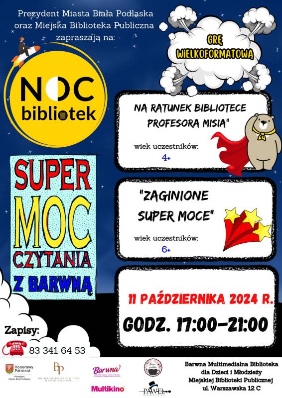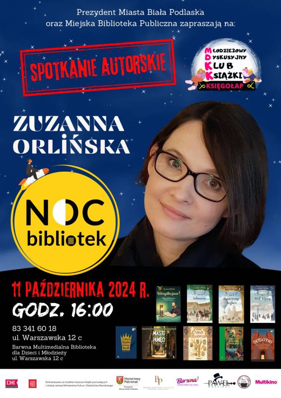 Zapraszamy na jubileuszową, dziesiątą odsłonę Nocy Bibliotek, która odbędzie się już 11 października 2024 r. w Miejskiej Bibliotece Publicznej w Białej Podlaskiej.