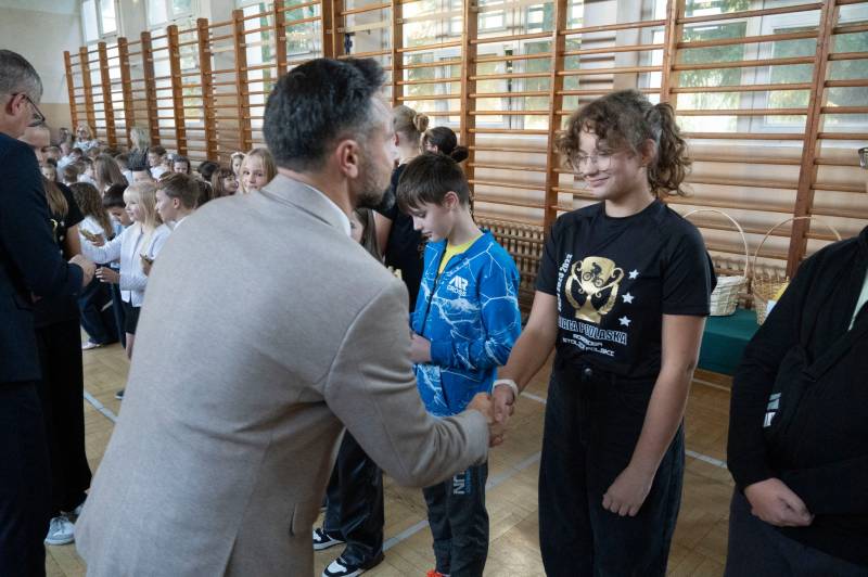 Najlepsze życzenia najmłodszym uczniom złożył prezydent Michał Litwiniuk podkreślając jak ważna jest także rola rodziców i nauczycieli zaangażowanych w rozwój umiejętności i talentów dzieci. Ich próbkę wysłuchali wraz z dyrektorem Marcinem Szwedem, wicedyrektorami Martą Bechtą i Grzegorzem Szycem oraz uczniami starszych klas. Były recytacje oraz śpiew, które zebrały ogromne brawa.