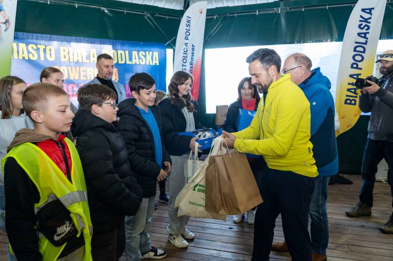 Spotkanie było świetną okazją do podsumowania konkursu dla szkół podstawowych na najciekawsze filmiki promujące bezpieczeństwo w ruchu drogowym, ze szczególnym uwzględnieniem bezpieczeństwa rowerzystów. Nagrody wręczył laureatom prezydent miasta Michał Litwiniuk.