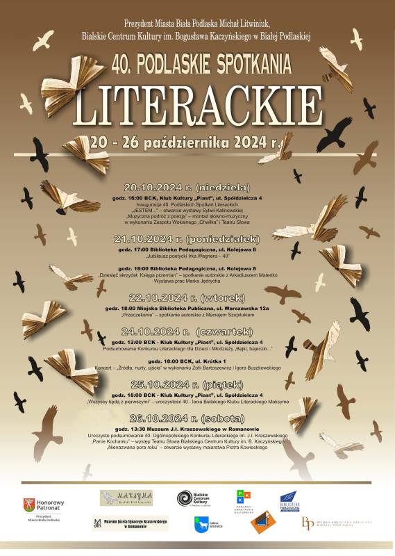 Do udziału w wydarzeniu zapraszają: prezydent miasta Michał Litwiniuk, Bialskie Centrum Kultury oraz Bialski Klub Literacki "Maksyma"
