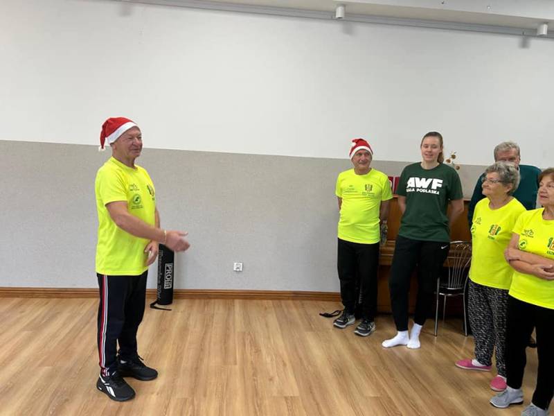 Podczas poniedziałkowych ćwiczeń organizowanych w Klubie Kultury PIAST przez Klub TKKF Krzna Biała Podlaska seniorów odwiedził święty Mikołaj z upominkami dla uczestników zajęć.