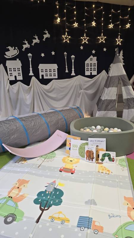 Do żłobka trafiły już nagrody: suchy basen okrągły z piłeczkami, namiot tipi, tunel, drewniana deska balansująca, drewniana dekoracja ścienna, piankowa mata oraz zestaw książek od wydawnictwa Tatarak.