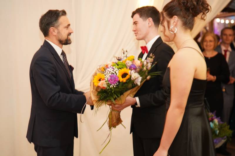 W zabawie na symboliczne sto dni przed maturą towarzyszyli im nauczyciele i wychowawcy, którzy przyjęli symboliczne kwiaty na znak wdzięczności za cierpliwość, otwartość i zrozumienie.