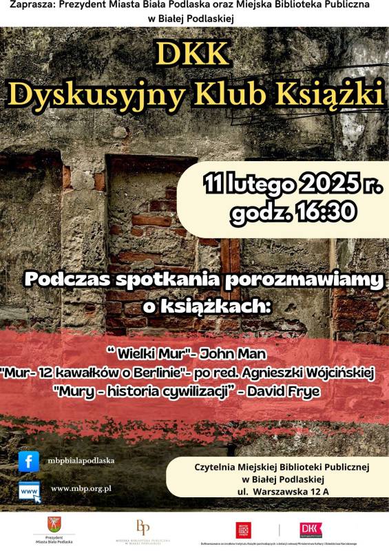 Miejska Biblioteka Publiczna w Białej Podlaskiej zaprasza na kolejne spotkanie Dyskusyjnego Klubu Książki dla Dorosłych