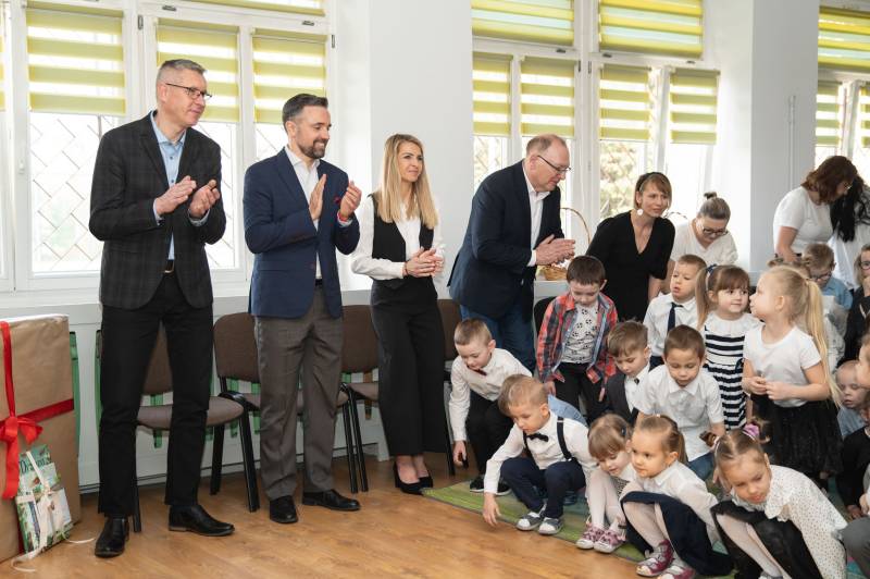 Prezydent Miasta Michał Litwiniuk wraz z dr. Stanisławem Romanowskim - naczelnikiem Wydziału Edukacji i Spraw Społecznych, dyrektorem ZSO nr 2 Marcinem Szwedem oraz wicedyrektor Martą Bechtą przekazli im upominki, nie mogło też zabraknąć urodzinowego tortu.