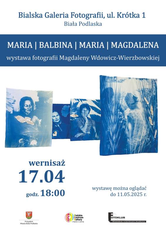 Wernisaż wystawy Magdaleny Wdowicz-Wierzbowskiej pt. Maria | Balbina | Maria | Magdalena odbędzie się 17 kwietnia o godz. 18:00 w Bialskiej Galerii Fotografii, ul. Krótka 1.