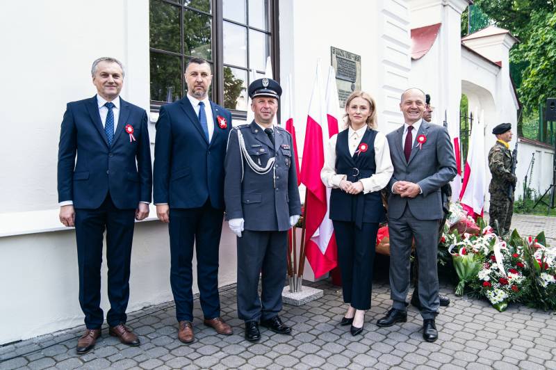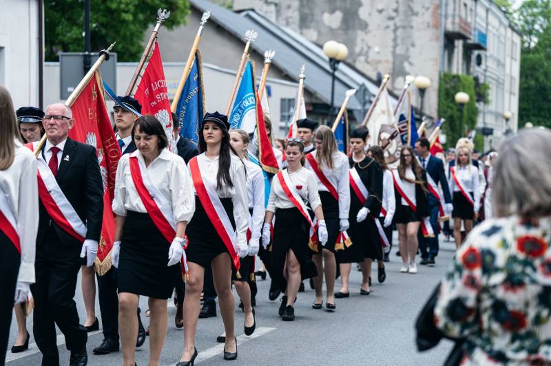 Przy tablicy upamiętniającej uchwalenie Konstytucji 3 Maja znajdującej się na budynku I LO im. J. I. Kraszewskiego kwiaty w imieniu mieszkańców złożyli: zastępca prezydenta Justyna Gorczyca, przewodniczący Rady Miasta Robert Woźniak, sekretarz Urzędu Miasta Biała Podlaska Artur Żukowski w asyście komendanta Straży Miejskiej Henryka Nędziaka oraz liczne delegacje - przedstawiciele służb mundurowych, władz rządowych i samorządowych, oświaty, stowarzyszeń i klubów oraz instytucji.
