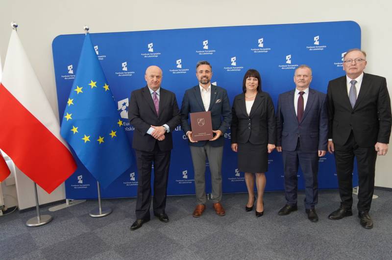 Umowę z rąk Marszałka Województwa Lubelskiego Jarosława Stawiarskiego prezydent Michał Litwiniuk odebrał wraz z d r. Stanisławem Romanowskim, naczelnikiem Wydziału Edukacji i Spraw Społecznych, Iwoną Jarocką, dyrektor ZSZ nr 1 oraz Ryszardem Dołęgą, dyrektorem ZSZ nr 2.