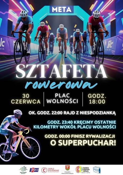 Kręcimy dla miasta Biała Podlaska. Przed nami ostatnie chwile rywalizacji o Superpuchar, o który walczymy z mieszkańcami Nowej Soli. Już 30 czerwca dziś o godz. 18:00 rozpoczniemy rowerową sztafetę, która potrwa aż do północy.