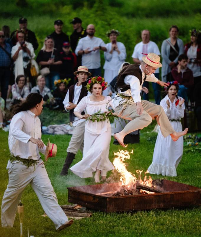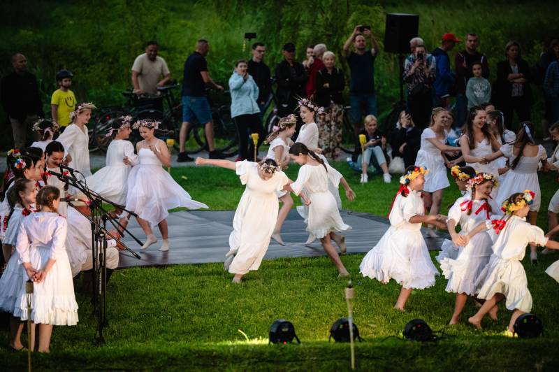 W sobotę 28 czerwca w Parku Radziwiłłowskim odbyło się zachwycające widowisko „Noc Świętojańska” Teatru Słowa. Spektakl cudownie oddał czar tego czasu, gdy kwiat paproci – symbol tajemniczego szczęścia – kwitnie tylko raz w roku, młodzież skacze przez ogień, by oczyścić duszę, wianki rzucone na rzekę mają zdradzić, co przyniesie los.