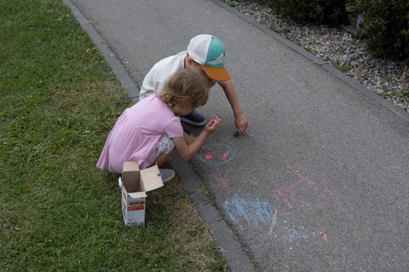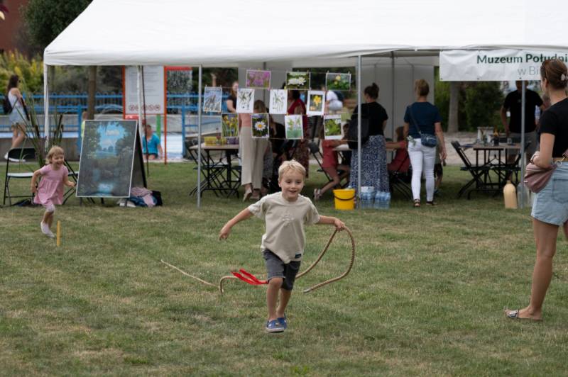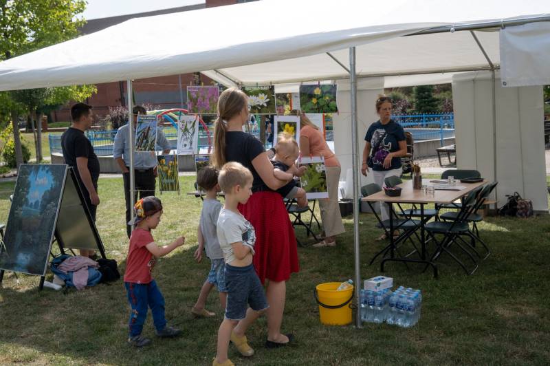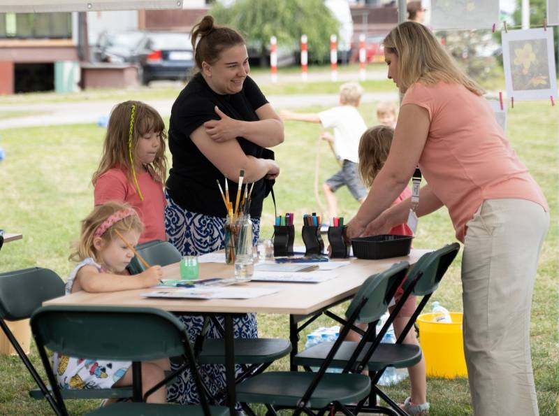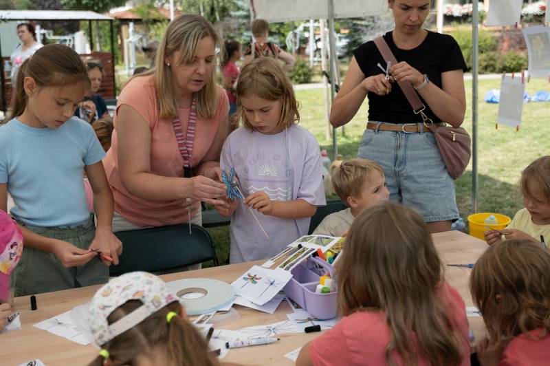W ramach odpoczynku po wyczerpujących zabawach można było usiąść w cieniu namiotu i zająć się malowaniem, rysowaniem kwiatów albo stworzeniem pięknej ważki.