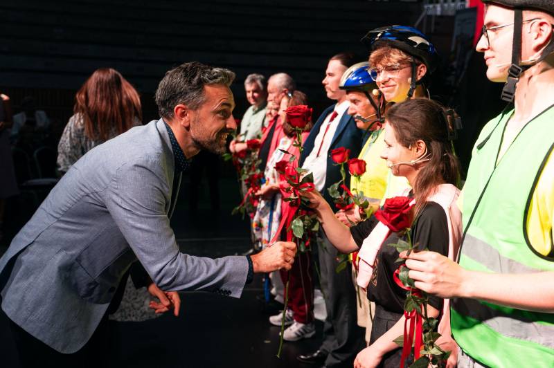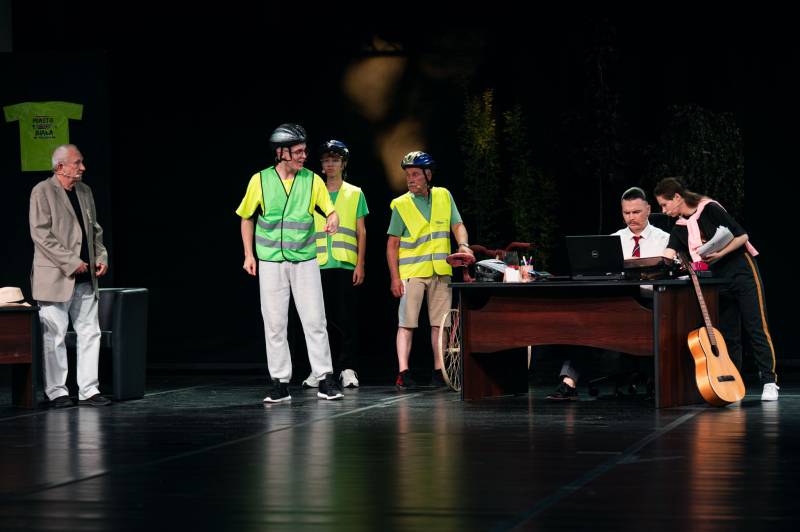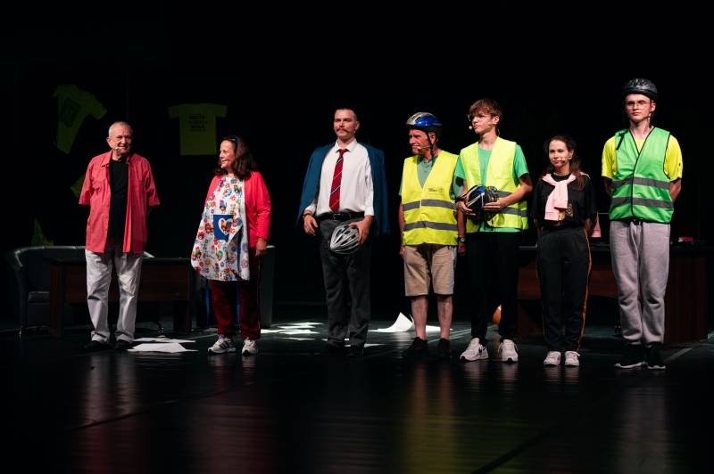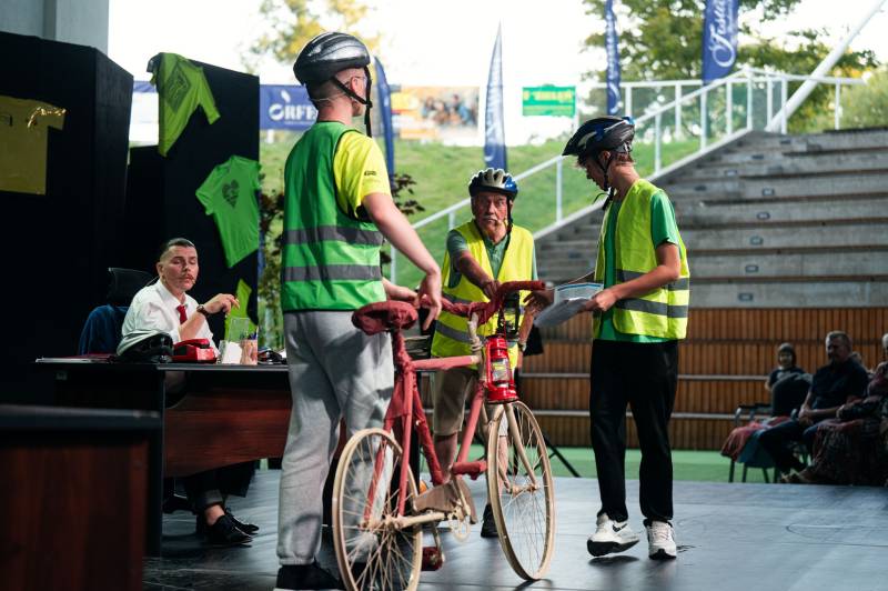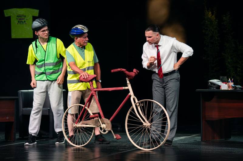 Dziękujemy za świetny scenariusz spektaklu „Tymczasem w Rowerowej Stolicy Polski” Jacekowi Danilukowi, za reżyserię Danucie Szaniawskiej, za kostiumy Małgorzacie Maciejewskiej i za fantastyczną grę aktorom: