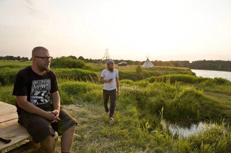 - Taka była idea tej pracy, bo chciałem się rzucić w coś dla mnie zupełnie nieznanego. Jedyny kontakt jaki wcześniej miałem z narzędziami to była siekiera i rąbanie drzewa od czasu do czasu. Założenie polegało również na tym, żeby tu zostać i zamieszkać nad rzeką na okres trwania prac. Dlatego powstało tipi, w którym nocuję, ale zdaje się że będę musiał powoli rezygnować z tego pomysłu, bo silny wiatr niebezpiecznie zaczyna podrywać konstrukcję. Podobno zbliżają się także burze, które stwarzają niebezpieczeństwo piorunów przy wodzie. To były jednak bardzo ciekawe momenty, gdy zostawałem sam w towarzystwie rzeki, łąki, pełni księżyca, czyli idealnych warunków pogodowych jakie mogły się przytrafić. To taka dodatkowa nagroda za to wszystko, specjalny walor.