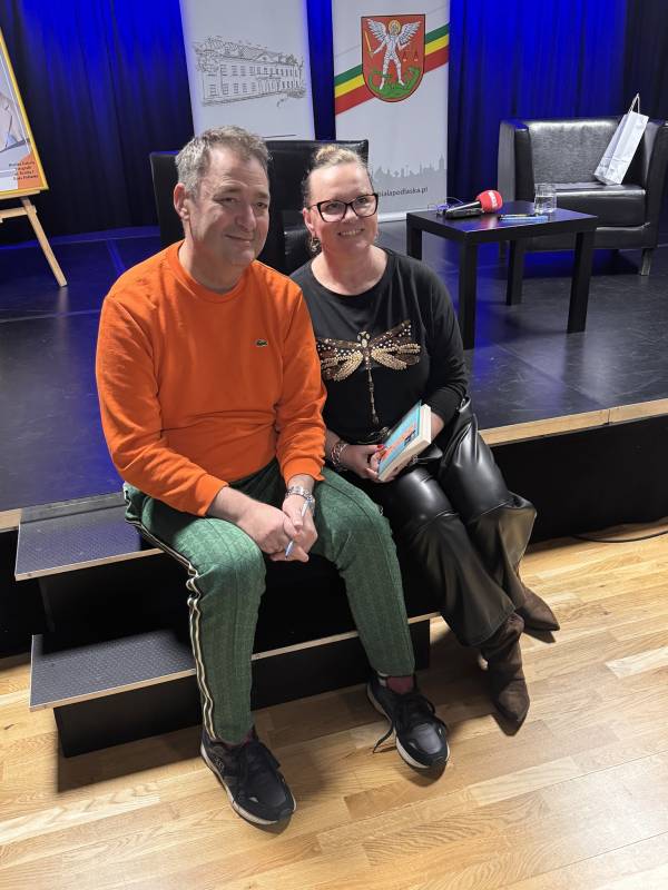 Miejska Biblioteka Publiczna w Białej Podlaskiej zaprosiła na spotkanie autorskie z aktorem, autorem książki „Padnij. Powstań. Życie po udarze”. W rozmowie z dyrektor MBP Renatą Szwed opowiadał o początkach swojej pracy aktorskiej, doświadczeniach w dubbingu, m.in. przy „Wiedźminie”, życiu po udarze, przyjaźniach w czasie choroby, roli w serialu „Barwy szczęścia” oraz swoich planach zawodowych.