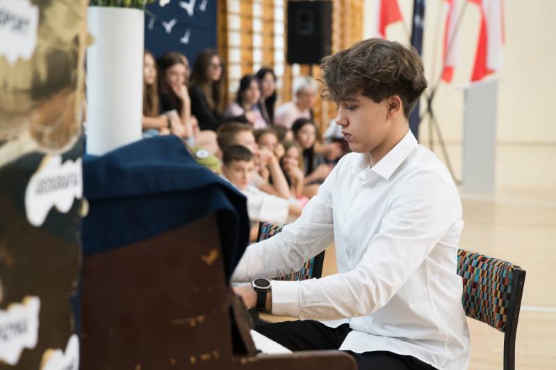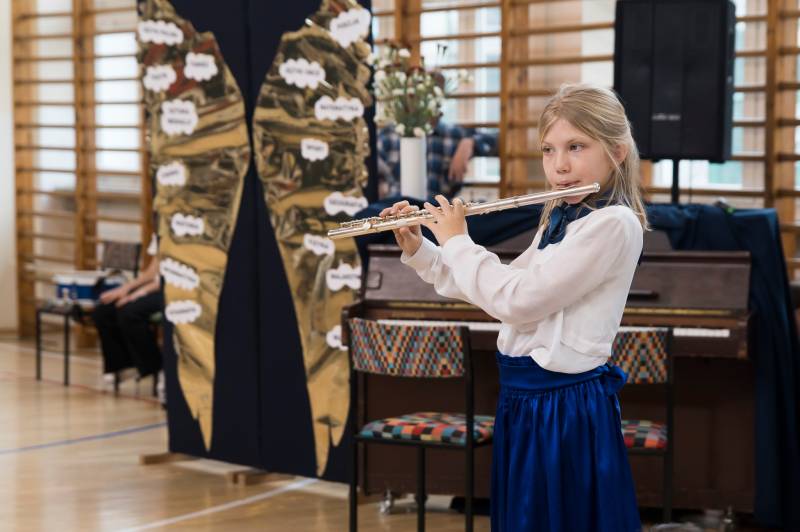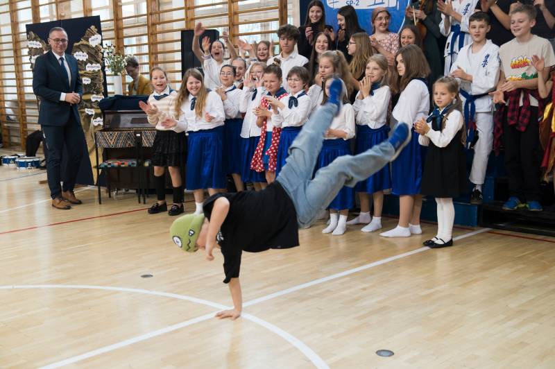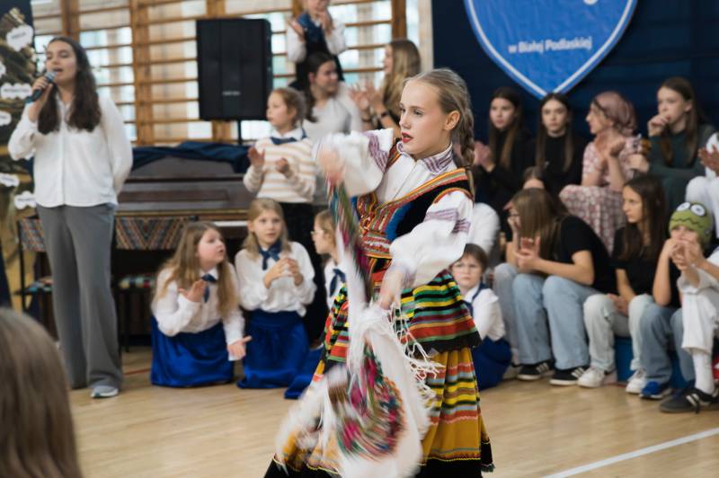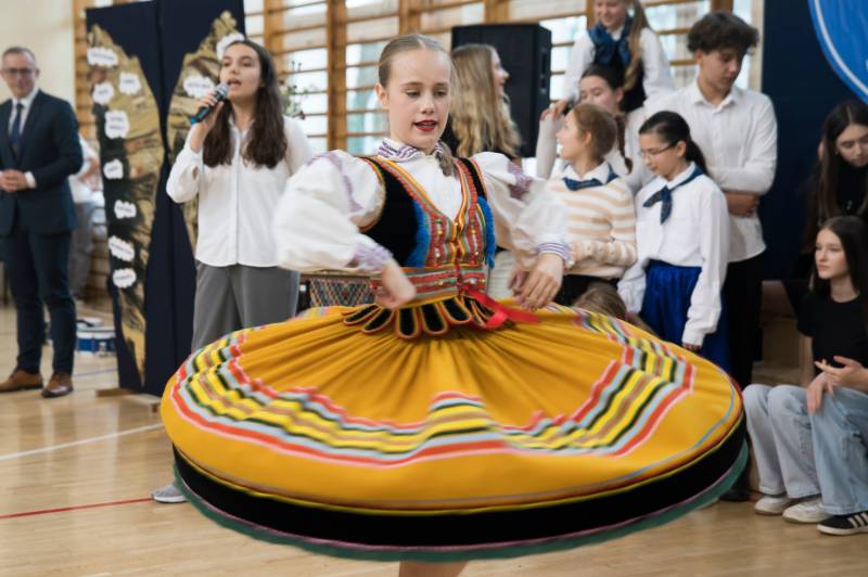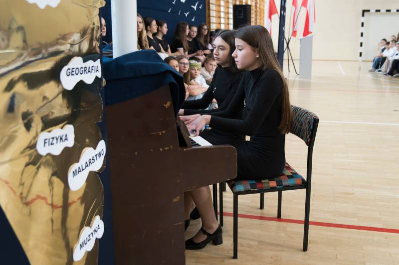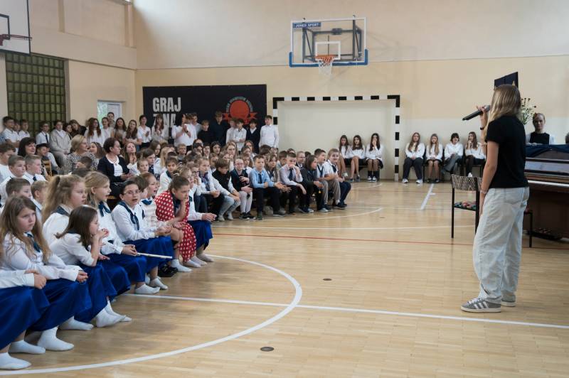 Uczniowie klas I–VIII podczas uroczystej akademii zaprezentowali swoje talenty wokalne, muzyczne i taneczne.