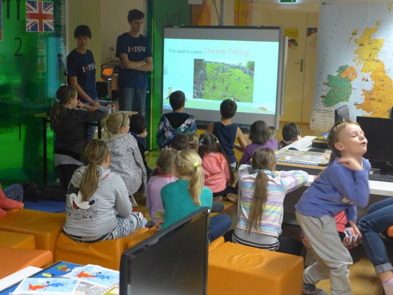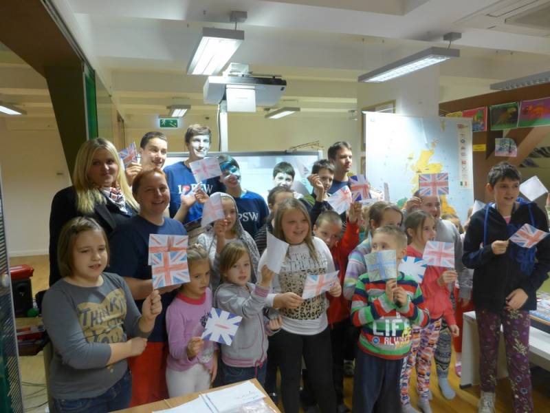 Goście specjalni, czyli studenci PSW przygotowali wspaniałą prezentację dotyczącą zwyczajów w Wielkiej Brytanii, zabawy plastyczne takie jak tworzenie własnej flagi. Przygotowanie mini-mapki sprawiły wiele radości i pozwoliły wykazać się każdemu uczestnikowi.