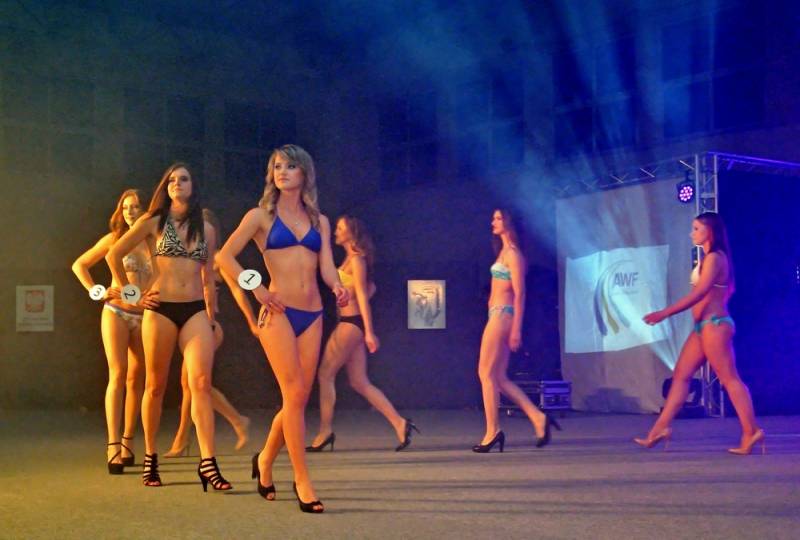 Hala AWF już tradycyjnie pękała w szwach, a wszystkie kandydatki prezentowały się w różnych odsłonach. Największe emocje wzbudził oczywiście pokaz w bikini, niemniej efektownie dziewczyny prezentowały się w sukniach ślubnych i wieczorowych. Nie zabrakło także trudnych pytań od prowadzącego.
