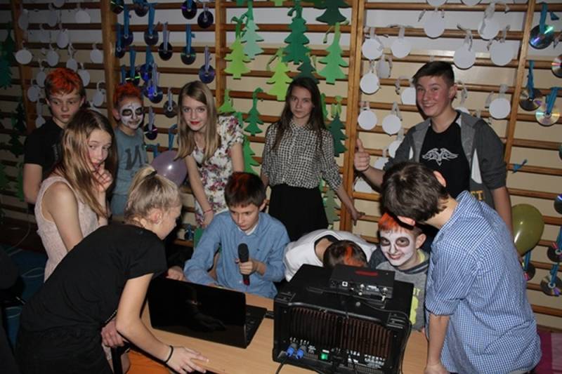 Szkolna hala zmieniła się w te dni w salę balową. Udekorowana kolorowymi balonami, choinkami, gwiazdami zachęcała do wyśmienitej zabawy - najpierw młodsze dzieci z klas I-III, a później uczniów klas IV-VI.