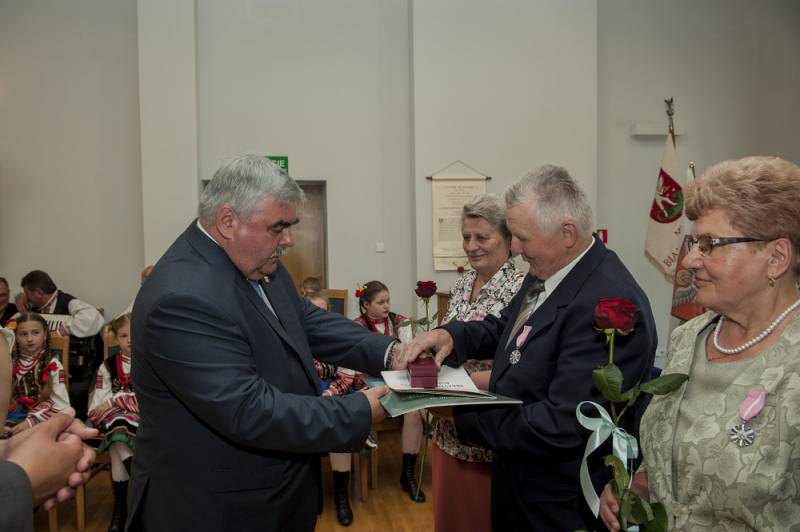 Bialski włodarz udekorował jubilatów medalem prezydenta Rzeczypospolitej Polskiej oraz wręczył pamiątkowe dyplomy. Dariusz Stefaniuk gratulował odznaczonym pięknego jubileuszu i życzył kolejnych lat spędzonych w szczęściu, zdrowiu, wzajemnej miłości i poszanowaniu. Uroczystość uświetnił występ kapeli ludowej „Podlasiacy”.