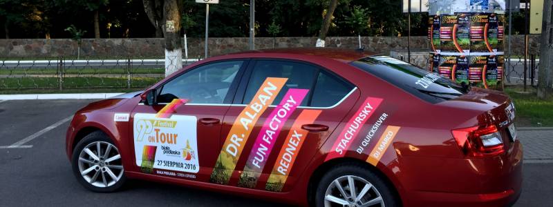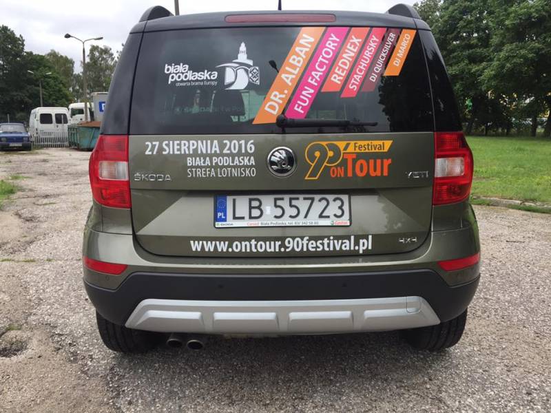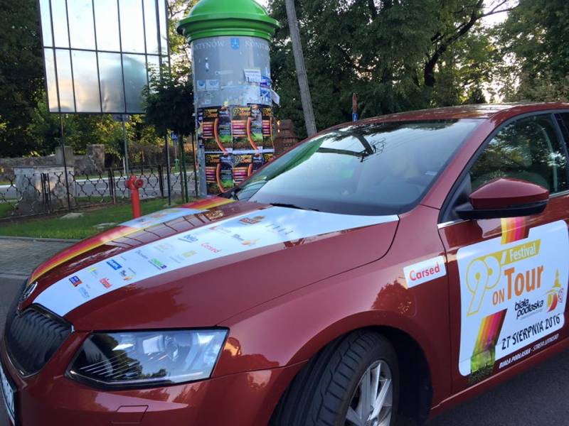 Od kilku dni w Białej Podlaskiej można zauważyć auta promujące wielkie wydarzenie muzyczne. Festiwalowy patrol ruszył w trasę i w ciągu półtorej miesiąca odwiedzi większość najważniejszych miejscowości i wydarzeń w regionie. Wszystko po to, aby o 90’ Festival on Tour dowiedziało się jak najwięcej osób. Specjalnie oklejone pojazdy wyjechały z bialskiego salonu firmy Carsed.