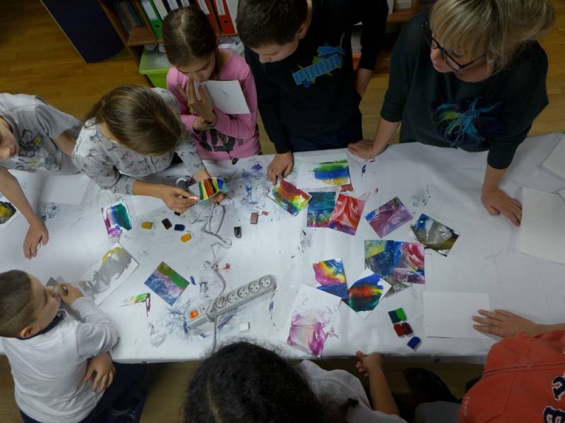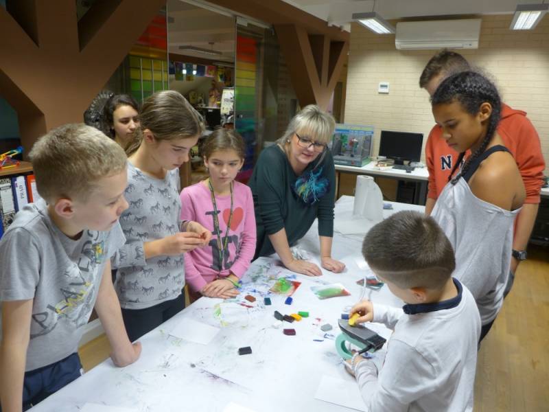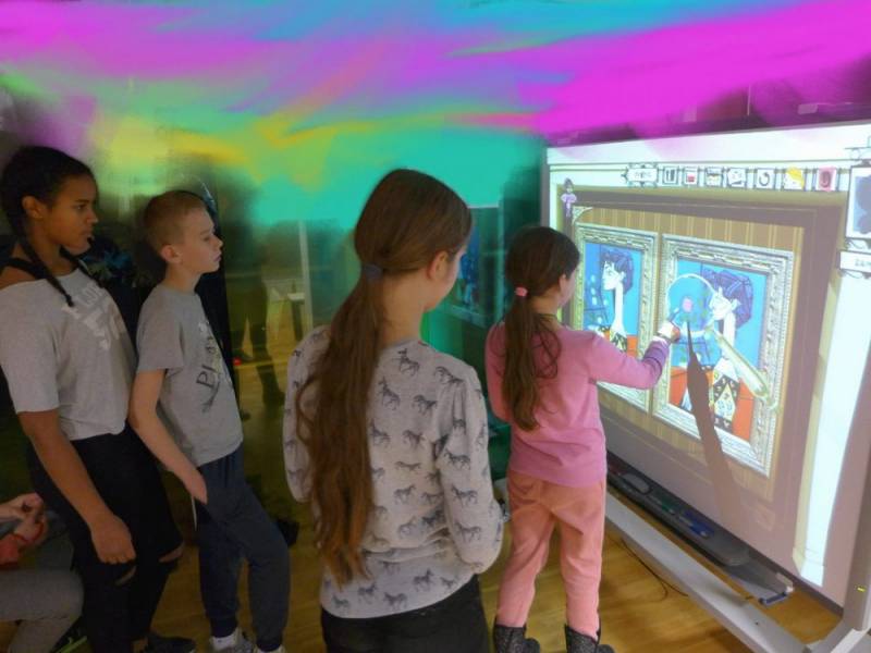 W programie znalazła się także krzyżówka z pojęć o plastyce, a pytania ukryto w tajemniczych kodach QR. Pojawiło się także zadanie namalowania abstrakcyjnego obrazu, zainspirowanego twórczością Pieta Mondriana. Na koniec, przy pomocy okularów wirtualnej rzeczywistości, odbyliśmy interaktywną podróż do światowej stolicy sztuki czyli Paryża, na słynną Wieżę Eiffla.