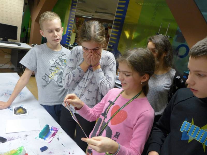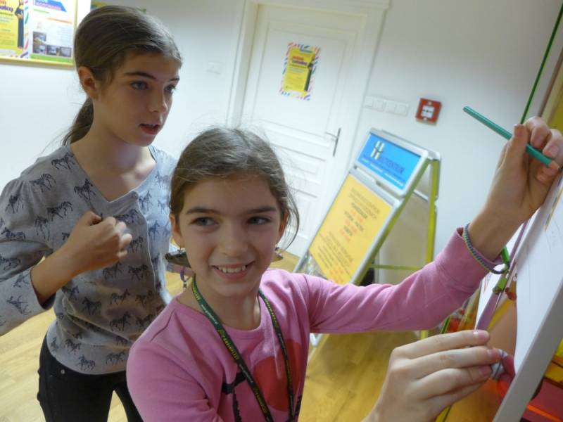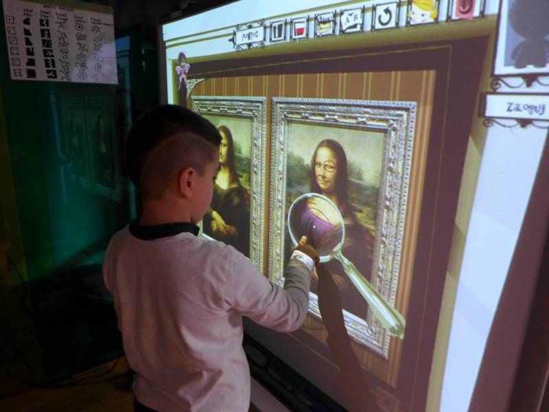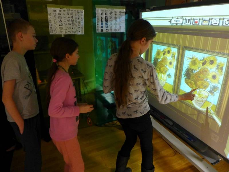 W programie znalazła się także krzyżówka z pojęć o plastyce, a pytania ukryto w tajemniczych kodach QR. Pojawiło się także zadanie namalowania abstrakcyjnego obrazu, zainspirowanego twórczością Pieta Mondriana. Na koniec, przy pomocy okularów wirtualnej rzeczywistości, odbyliśmy interaktywną podróż do światowej stolicy sztuki czyli Paryża, na słynną Wieżę Eiffla.