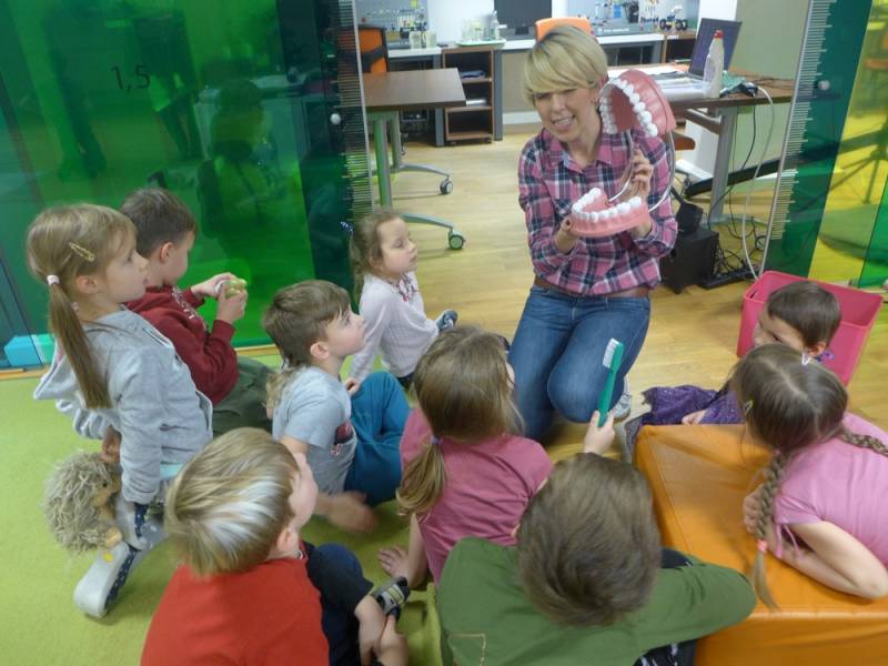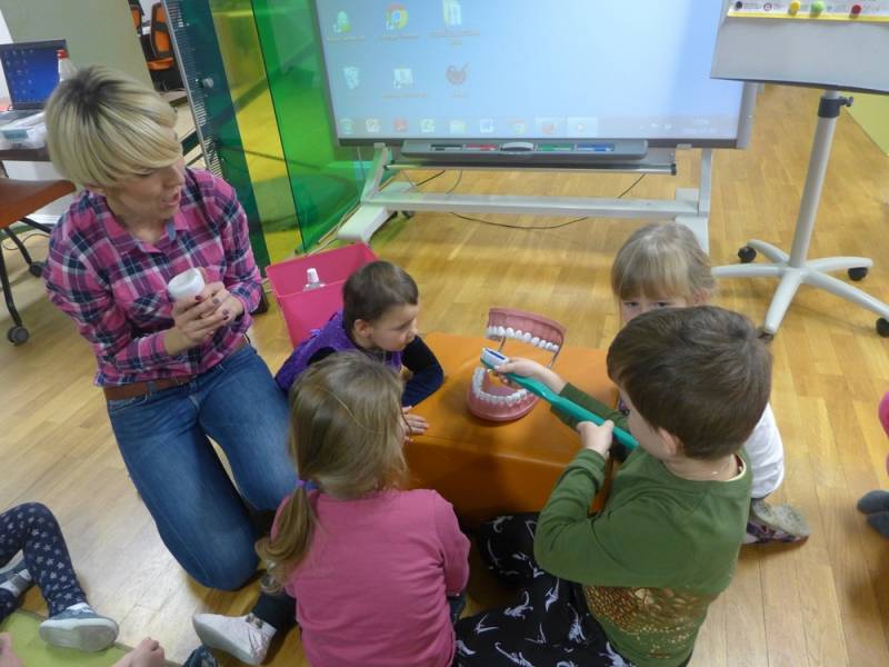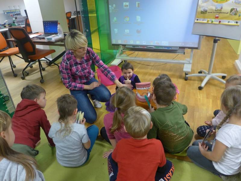 Na koniec zajęć uczestnicy poznali zasady utrzymania prawidłowej higieny jamy ustnej i rozwiązywały quiz wiedzy na tablicy interaktywnej.