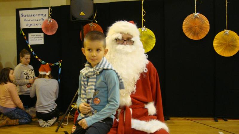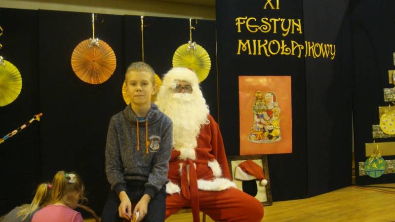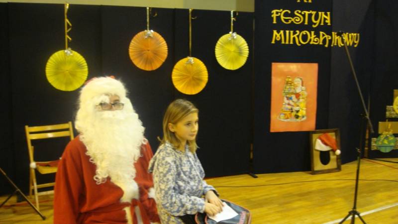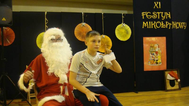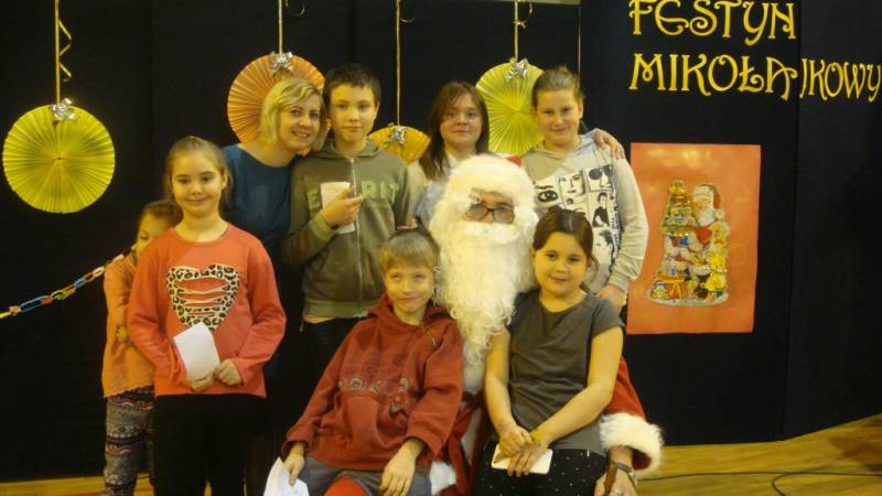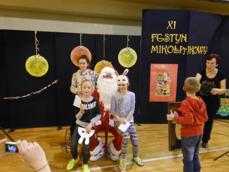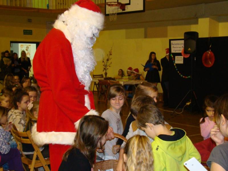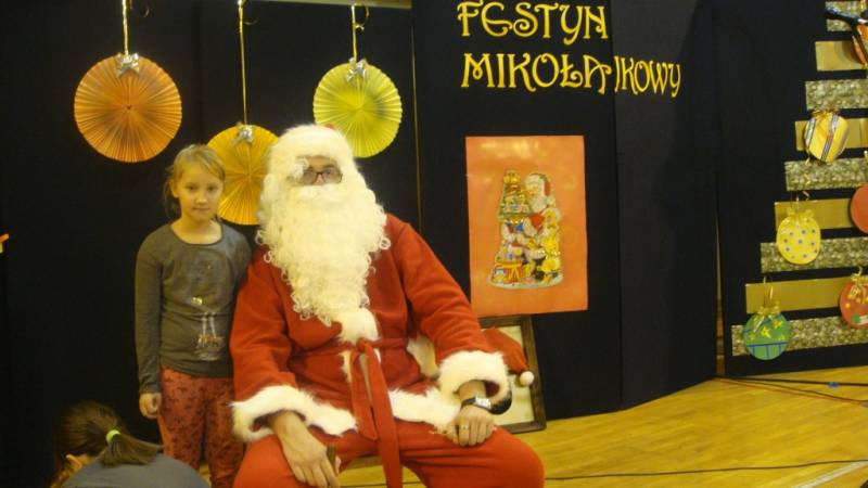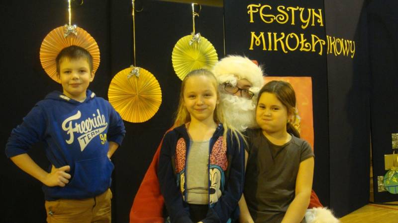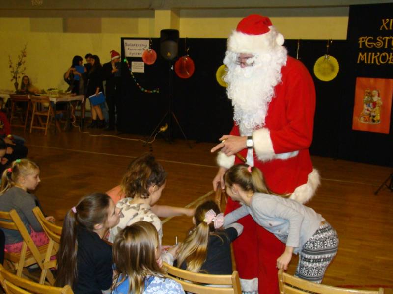 Na festynie nie mogło zabraknąć głównego bohatera, czyli Świętego Mikołaja, który obdarował zaproszenie dzieci słodkimi podarunkami.
