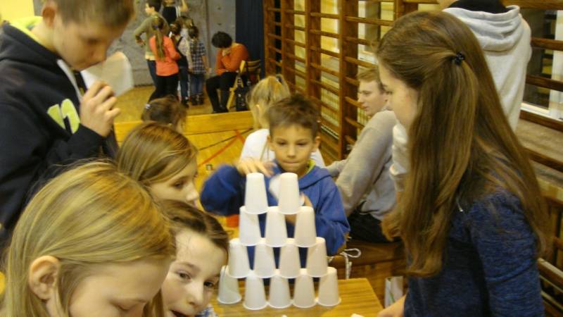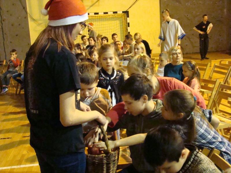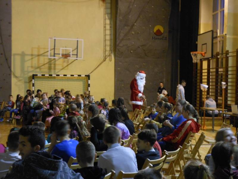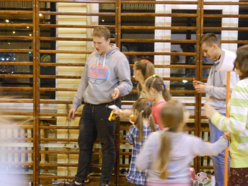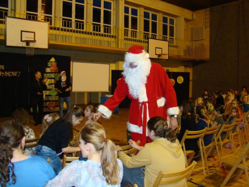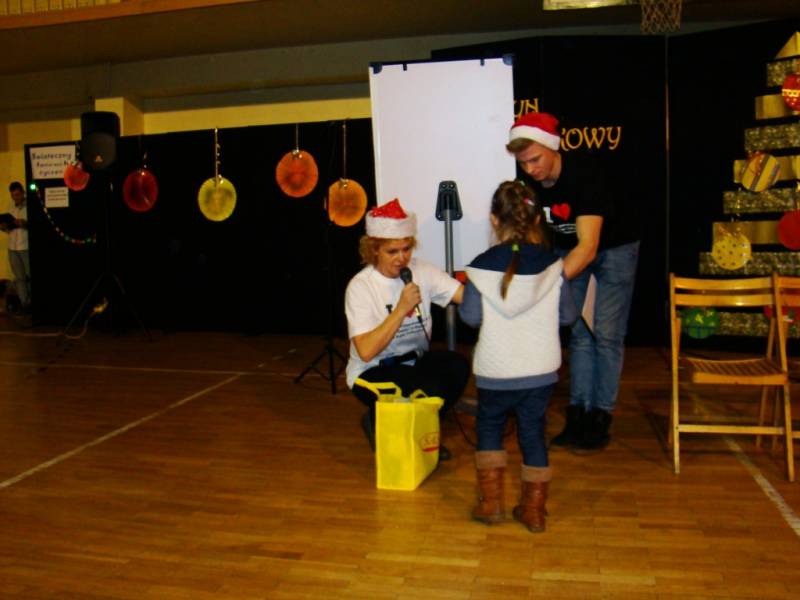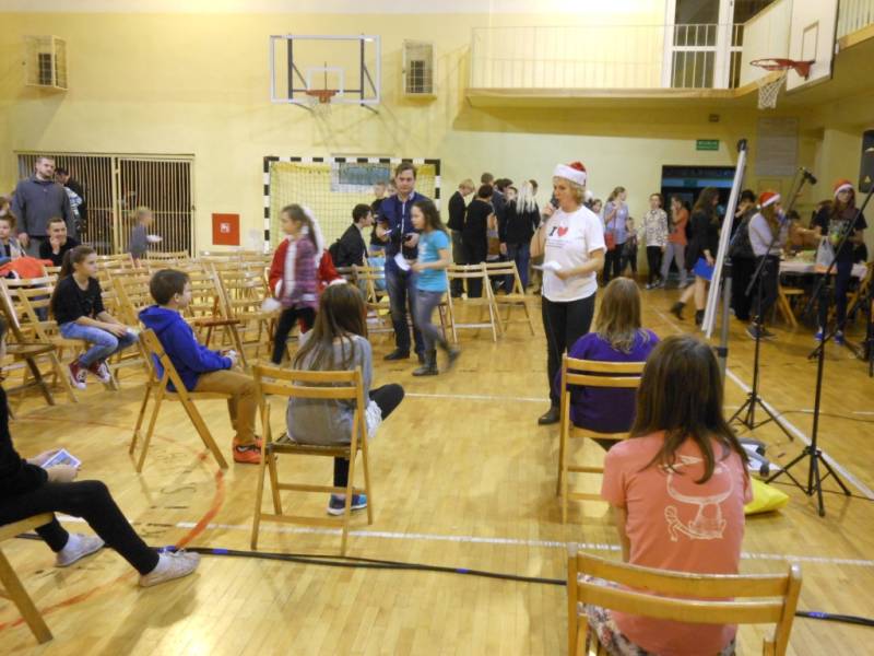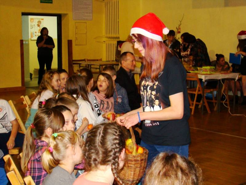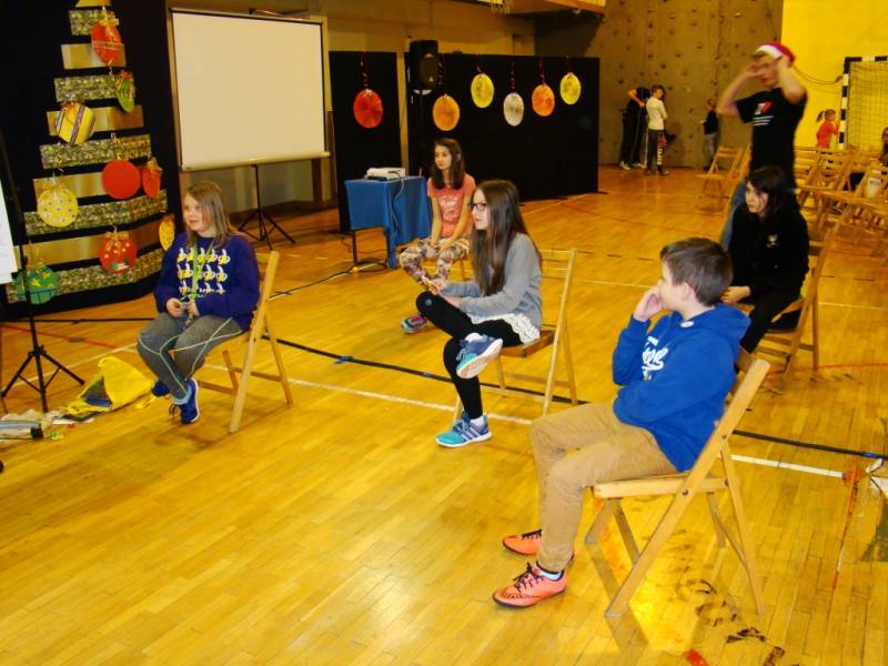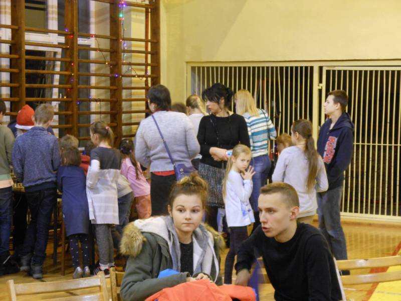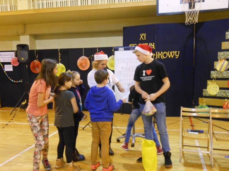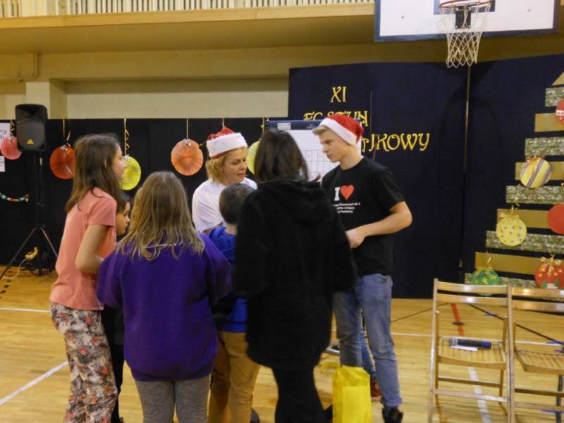 Po części artystycznej dzieci zostały zaproszone na poczęstunek, przygotowany przez uczniów szkoły, a następnie do wspólnej zabawy. W programie nie zabrakło ciekawych konkurencji sportowych, zorganizowanych przy wsparciu nauczycieli wychowania fizycznego. Dużym zainteresowaniem cieszyło się stanowisko rękodzielnicze, gdzie dzieci mogły samodzielnie wykonać dekoracje bożonarodzeniowe i maski karnawałowe.