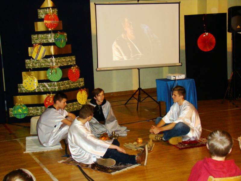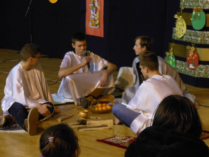 Uczestnicy mieli okazję wysłuchania krótkiego koncertu świątecznych piosenek w wykonaniu zespołu wokalnego pod kierunkiem Anny Kozłowskiej oraz Izabeli Włodarskiej. Dodatkowo, Szkolne Koło Teatralne pod kierunkiem Małgorzaty Twarowskiej–Przygody i Agnieszki Alikowskiej, przygotowało spektakl „Czwarty król”, nawiązujący do Świąt Bożego Narodzenia.