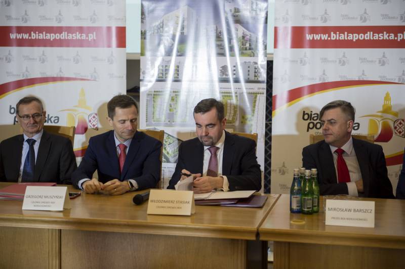 Umowę z wykonawcą inwestycji podpisali w urzędzie miasta przedstawiciele BGK Nieruchomości: Grzegorz Muszyński i Włodzimierz Stasiak. Wcześniej podpisano w tej sprawie stosowny list intencyjny, a następnie umowę inwestycyjną na Giełdzie Papierów Wartościowych w Warszawie. Biała Podlaska jako pierwsze miasto w Polsce rusza z realizacją programu Mieszkanie Plus.