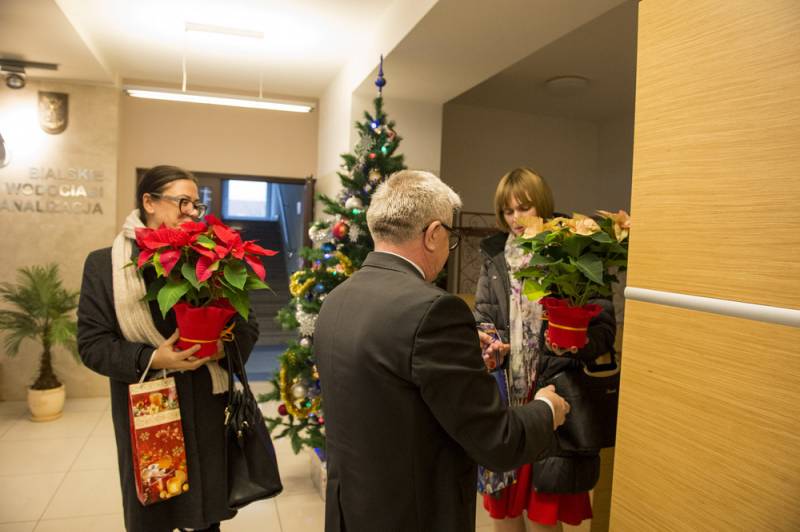 W bialskim magistracie o świąteczny nastrój zadbał Chór Camerata z IV LO im. S. Staszica, który zaśpiewał najpiękniejsze kolędy przy akompaniamencie dyrektora BCK Mariusza Orzełowskiego i pod kierunkiem Iwony Świderskiej. Pracownicy oprócz życzeń otrzymali świąteczny podarunek, a prezydent Stefaniuk w kilku słowach podsumował udany, choć pracowity rok.