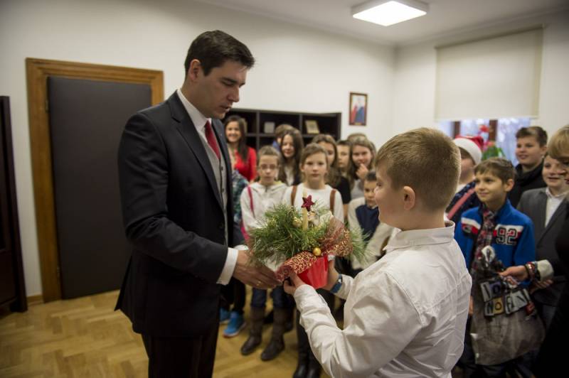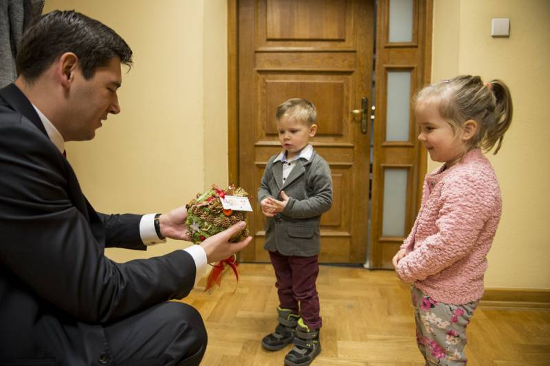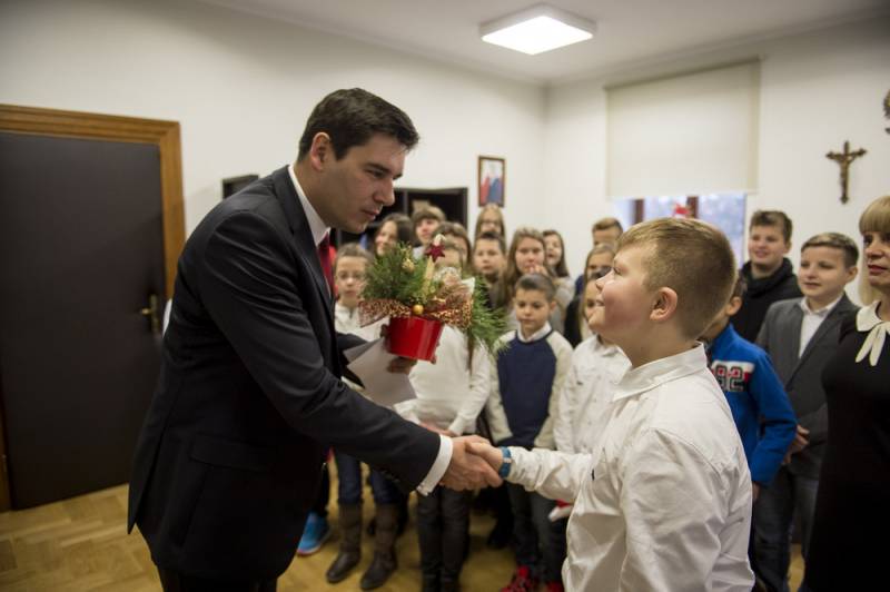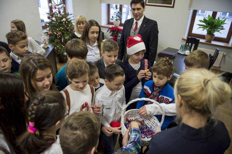 Urząd miasta przed Świętami zapełnił się także dziećmi ze szkół i przedszkoli, składających życzenia prezydentowi.