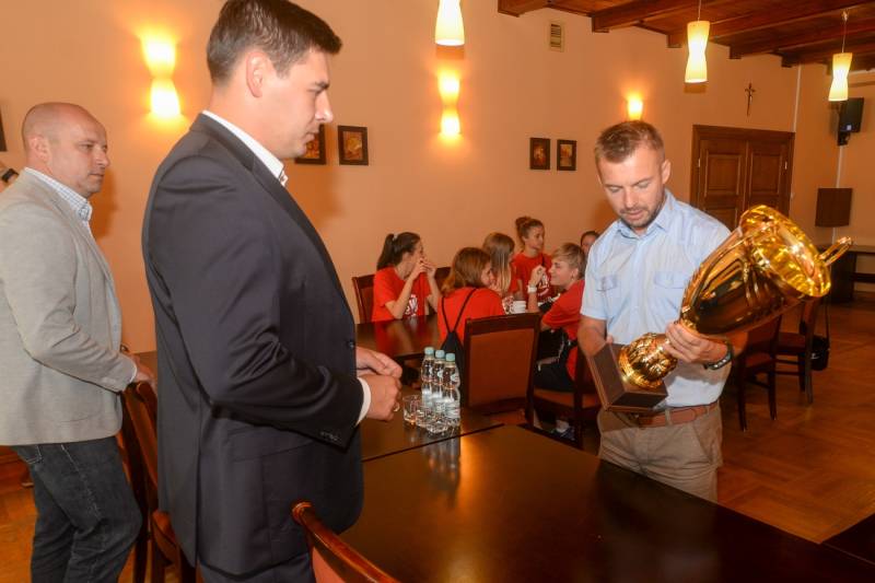Prezes AZS PSW Marcin Kasprowicz wręczył prezydentowi pamiątkowy, srebrny medal. Taki sam, jaki otrzymały młode piłkarki. Spotkanie było okazją do rozmowy o przyszłości bialskiego futbolu kobiecego. Już wkrótce akademiczki swoje mecze będą mogły rozgrywać na nowoczesnym stadionie miejskim.