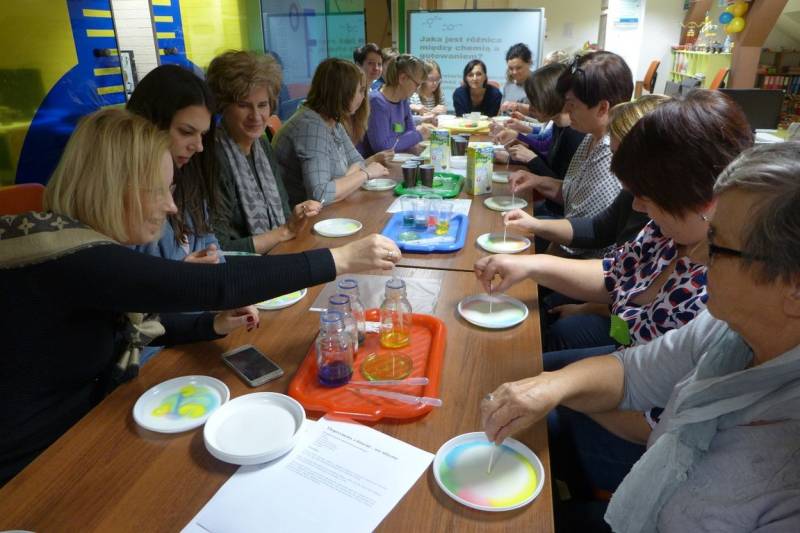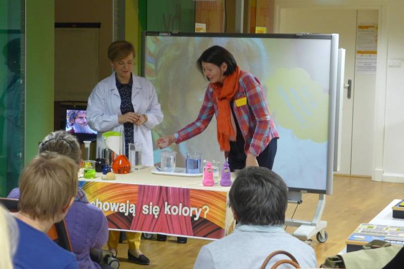 Podczas warsztatu „Do odważnych świat należy - doświadczenia i eksperymenty w bibliotece” prowadząca, Agnieszka Wdowczyk, zaprezentowała kilka ciekawych i niezwykłych eksperymentów z wykorzystaniem podstawowych składników dostępnych w każdym gospodarstwie domowym. Uczestnicy warsztatu mieli okazję samodzielnie wykonać kilka doświadczeń.