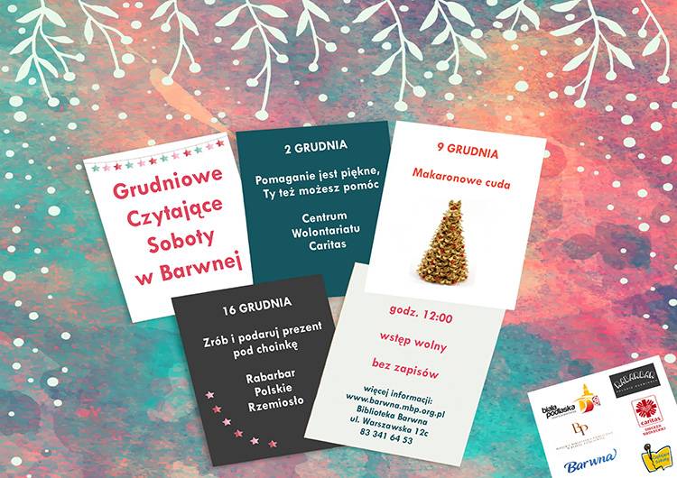 W grudniu Miejska Biblioteka Publiczna zaprasza wszystkich mieszkańców miasta na rodzinne „Czytające Soboty”. Spotkania odbywać się będą w każdą sobotę o godzinie 12.00 w Bibliotece Barwnej przy ulicy Warszawskiej 12c. Wstęp wolny. Wszelkie informacje pod numerem telefonu 83 341 64 53.