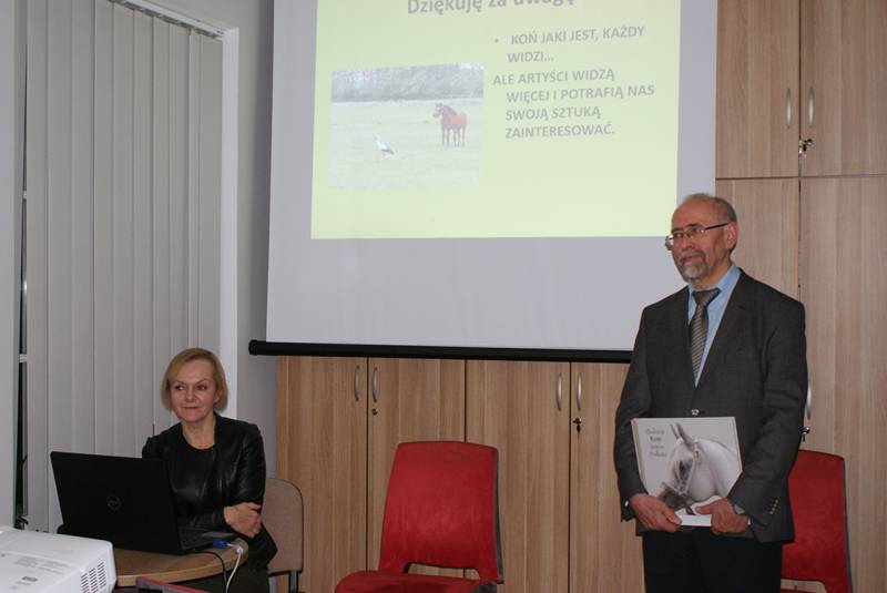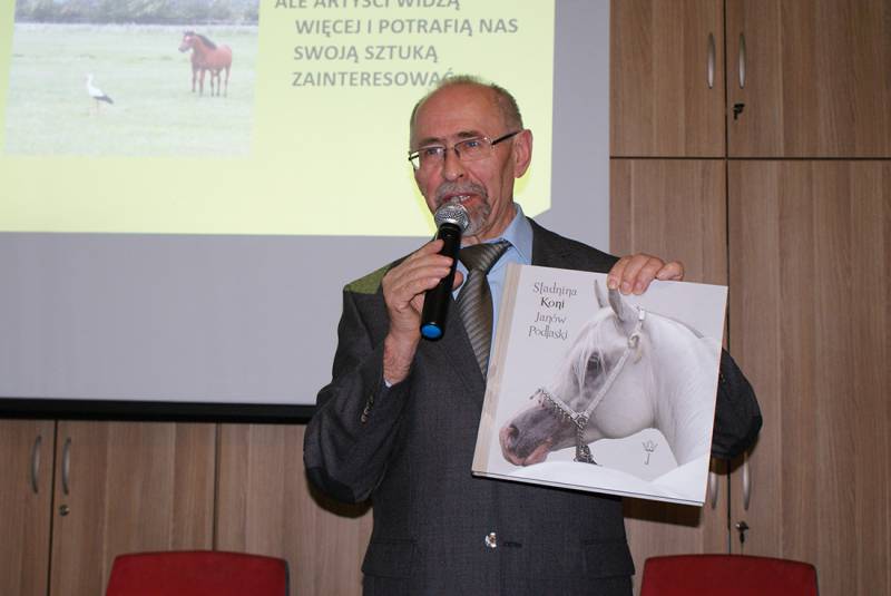 Konie od wieków stanowiły interesujący temat dla malarzy, rzeźbiarzy, pisarzy i fotografików. Na ich temat powstało mnóstwo książek, obrazów i zdjęć. W Stadninie Koni w Janowie Podlaskim od lat siedemdziesiątych odbywały się plenery malarskie, na które przyjeżdżali znani malarze i fotograficy. Prelekcja połączona była z prezentacją najnowszego albumu „Stadnina Koni Janów Podlaski”, do której tekst napisał bohater spotkania.