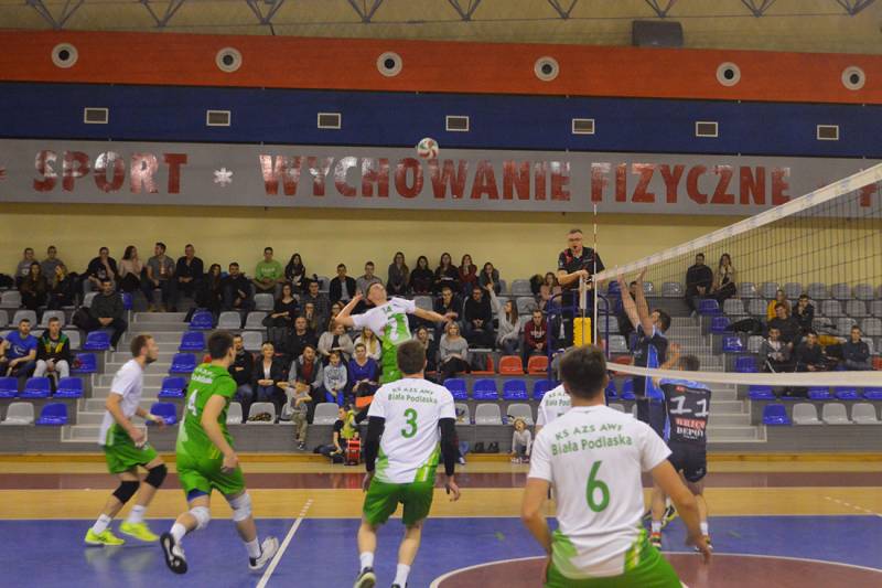 W pierwszej odsłonie spotkania od pierwszych minut narzucili swój styl gry. W połowie seta uzyskali kilkupunktową przewagę, której już nie oddali do końca wygrywając 25:17. Drugi set, jak się później okazało był najbardziej zacięty. Gospodarze co prawda uzyskali 3 punkty przewagi i na tablicy wyświetlił się wynik 21:18, ale przyjezdni nie dali za wygraną i doprowadzili najpierw do remisu, a następnie wyszli na prowadzenie 22:21. Z nerwowa końcówką jednak lepiej poradzili sobie akademicy z Białej Podlaskiej i wygrali drugą partię 25:23.