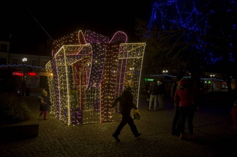 Podobnie jak w tamtym roku nad głowami przechodniów deptaka ul. Brzeskiej mienią się świetlne kurtyny. Na placu Wolności nie zabrakło choinki, a także nowej ozdoby: wielkiej paczki, przypominającej gwiazdkowy prezent. Nowości spotkamy też w parku Radziwiłłowskim, a także na rondach.