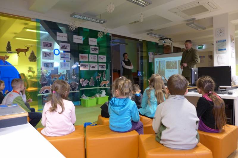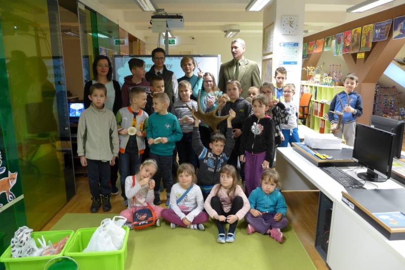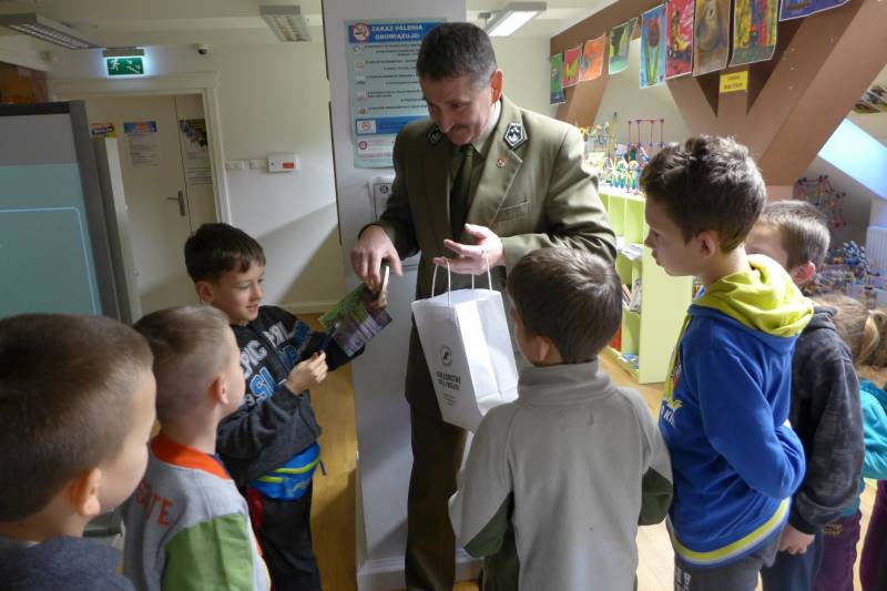 Najmłodsi nie tylko słuchali opowieści o tym, jak dbać o zwierzęta w czasie zimy ale również aktywnie uczestniczyli w spotkaniu. Aktywność została nagrodzona drobnymi upominkami przygotowanymi przez gości. Wielkie zainteresowanie wzbudziły także przywiezione przez leśniczego eksponaty – m.in. poroża jelenia i łosia.