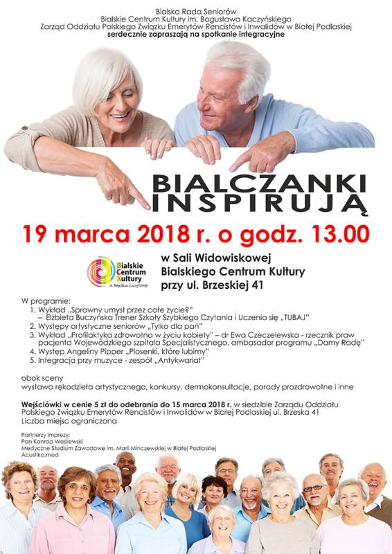 „Bialczanki inspirują” to kolejna impreza skierowana dla bialskich seniorów. W związku z Dniem Kobiet. Impreza, która odbędzie się 19 marca poświęcona będzie głównie płci pięknej. Obowiązują zapisy.