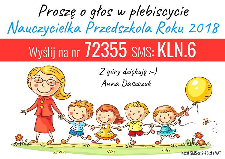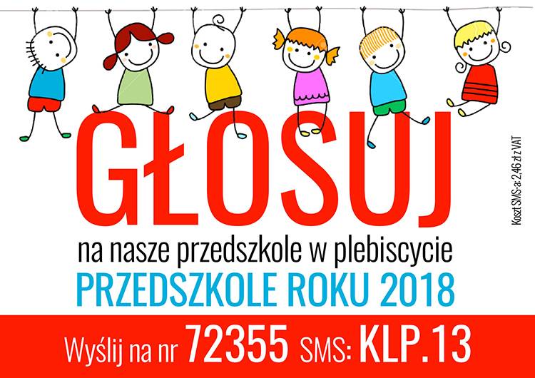 Przedszkole Samorządowe nr 6 w Białej Podlaskiej bierze udział w plebiscycie Kuriera Lubelskiego ,,Przedszkole Roku 2018” i "Nauczycielka Przedszkola Roku 2018". Dzięki głosom placówka może wygrać cenne zabawki i nagrody. Głosowanie trwa do czwartku 17 maja do godz. 21.00. Koszt wysłania sms - 2,46 zł z VAT.