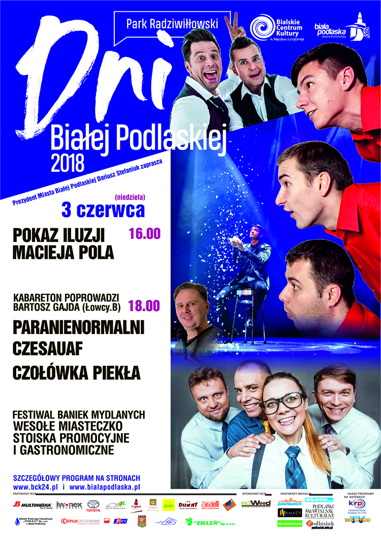 Prezydent Dariusz Stefaniuk i Bialskie Centrum Kultury im. B. Kaczyńskiego w Białej Podlaskiej zapraszają na coroczne święto - Dni Miasta Białej Podlaskiej. 1 i 2 dzień czerwca przebiegnie pod hasłem "Zapewniamy dobrą energię" - sponsorem głównym tych dni jest PGE Polska Grupa Energetyczna.
