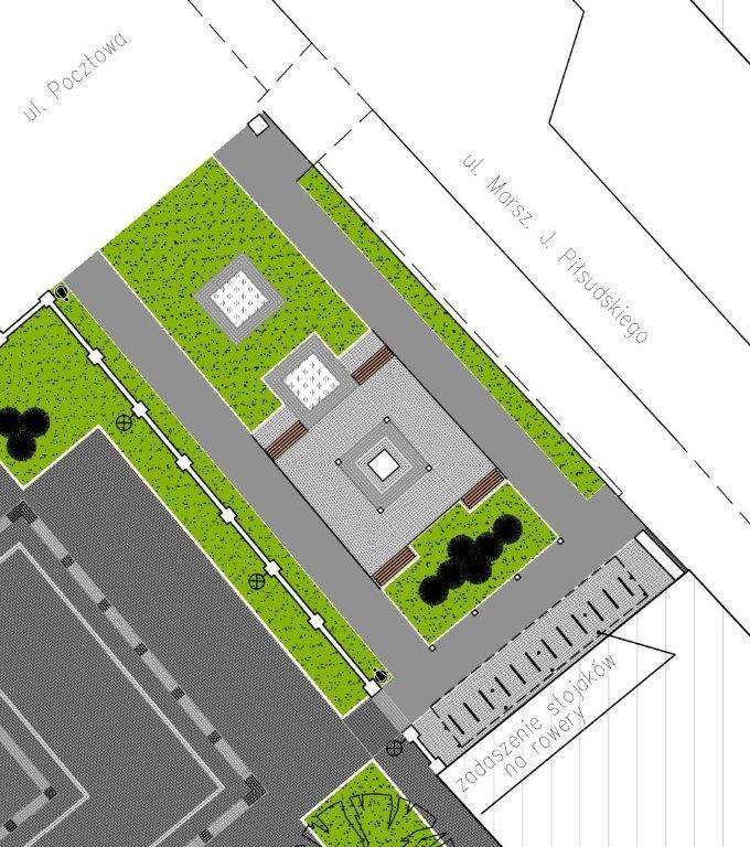 Naprzeciwko magistratu, obok nowego parkingu, powstanie miejski skwerek. Znajdzie się tam miejsce dla: zieleni, ławek oraz alejek z kostki. Magistrat nie zapomina również o rowerzystach. Powstanie zadaszona wiata do parkowania jednośladów. Zaplanowano również ważny akcent historyczny.