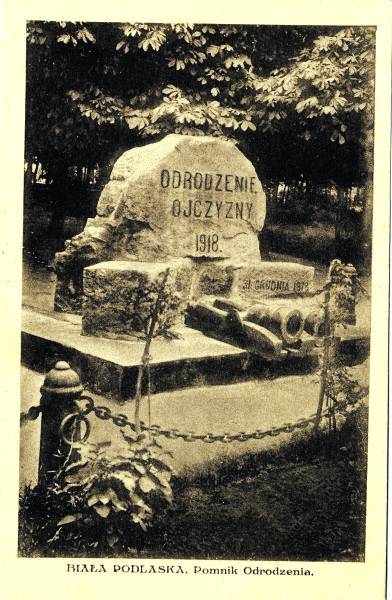 W południowej części skwerku stanie cokół z kamieniem, który był częścią historycznego pomnika. Monument ustawiono w dziesiątą rocznicę odzyskania przez Polskę niepodległości. Umiejscowiony był niegdyś na placu Wolności. Ukryty przez bialczan na początku II Wojny Światowej. Niedawno odnaleziono jego najbardziej istotny fragment z wykutym napisem: "ODRODZENIE OJCZYZNY 1918". Znaleziono go na terenie rozbudowy jednego z bialskim przedsiębiorstw.