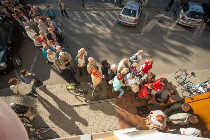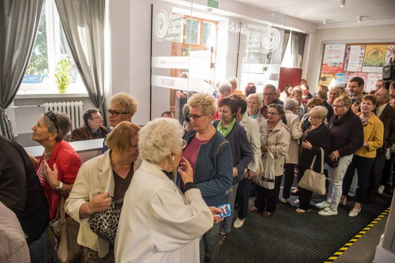 Kilkudziesięciometrowa kolejka to przede wszystkim oczekujący na koncert zespołu Mazowsze, który w roku 70-lecia działalności zagra w Białej Podlaskiej. Ale mieszkańcy pytali również o zaproszenia na dwa inne koncerty: wieczór otwarcia z udziałem Witolda Matulki oraz wieczór polonijny, na którym usłyszymy zespoły również zza wschodniej granicy.