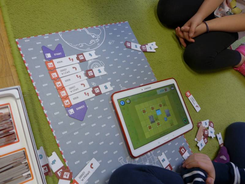Trzecie warsztaty adresowane były do najmłodszych uczestników i wykorzystana została na nich gra edukacyjna do nauki programowania Scottie Go! Uczestnicy z kartonowych klocków układali programy, następnie skanowali je z pomocą tabletu tak, aby bohater w aplikacji wykonywał odpowiednie ruchy i działania.