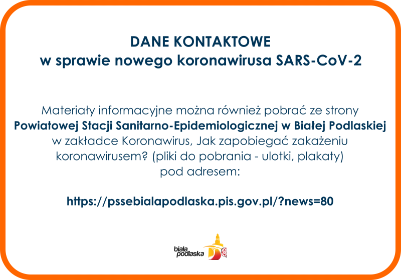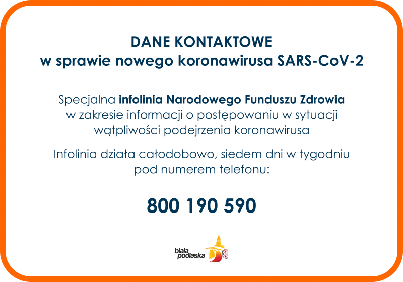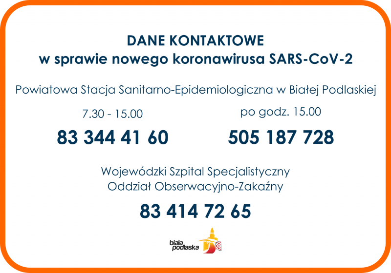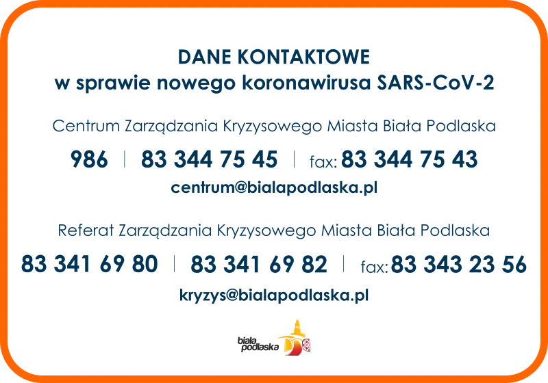Wszelkich informacji na temat koronawirusa udzielają centrum i referat zarządzania kryzysowego. Prezydent Miasta Biała Podlaska wydał zalecenia do szkół, by zrezygnować ze zgromadzeń, wyjść czy wycieczek.
